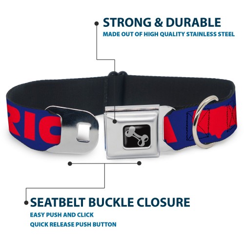 Dog Bone Seatbelt Buckle Collar – ‘MERICA/USA Silhouette Blue/Red
