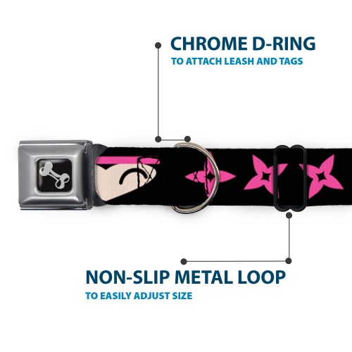 Dog Bone Seatbelt Buckle Collar – Ninja Star Black/Pink