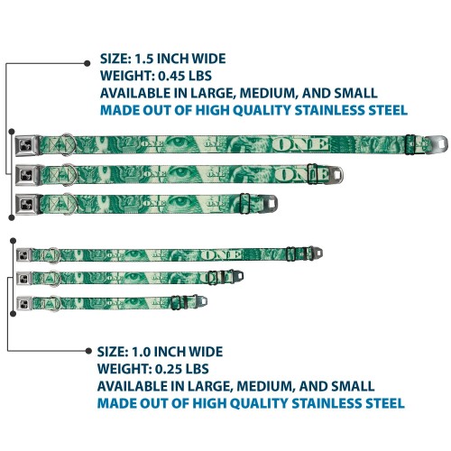 Dog Bone Seatbelt Buckle Collar – One Dollar Bill Eye of Providence/Bald Eagle CLOSE-UP