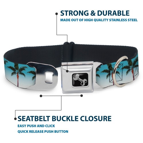 Dog Bone Seatbelt Buckle Collar – Palm Tree Skyline