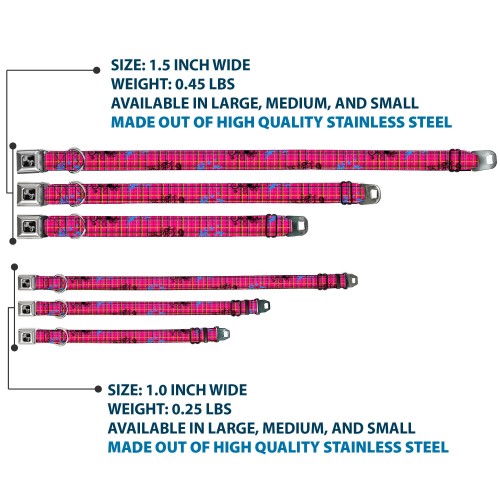 Dog Bone Seatbelt Buckle Collar – Plaid Curls Pink/Black/Yellow/Blue