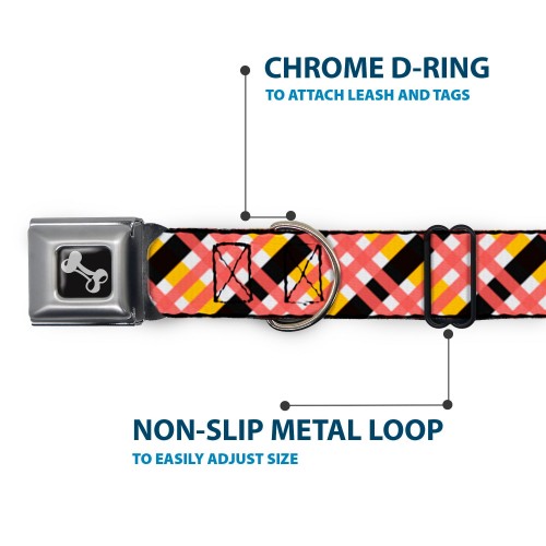 Dog Bone Seatbelt Buckle Collar – Plaid X White/Gold/Black/Pink