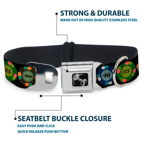 Dog Bone Seatbelt Buckle Collar – Poker Chips 1