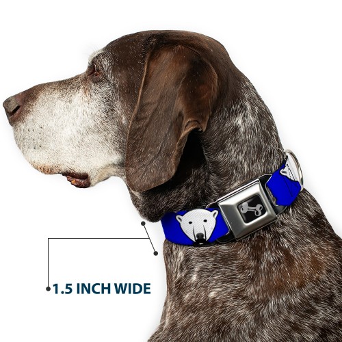 Dog Bone Seatbelt Buckle Collar – Polar Bear w/Mustache Royal
