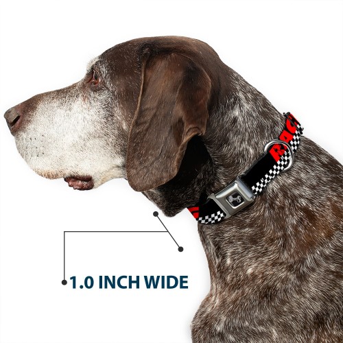Dog Bone Seatbelt Buckle Collar – RACING w/Checker Black/White/Red