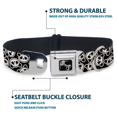 Dog Bone Seatbelt Buckle Collar – Scattered Panda Bear Cartoon2 Black/White