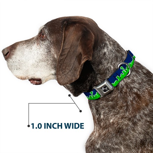 Dog Bone Seatbelt Buckle Collar – Seattle Skyline Navy/Bright Green