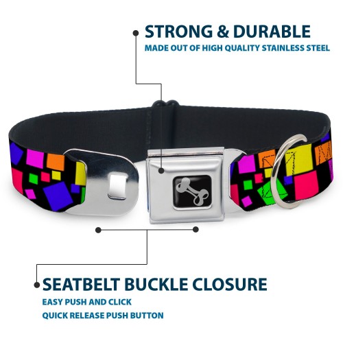 Dog Bone Seatbelt Buckle Collar – Squares Black/Multi Color