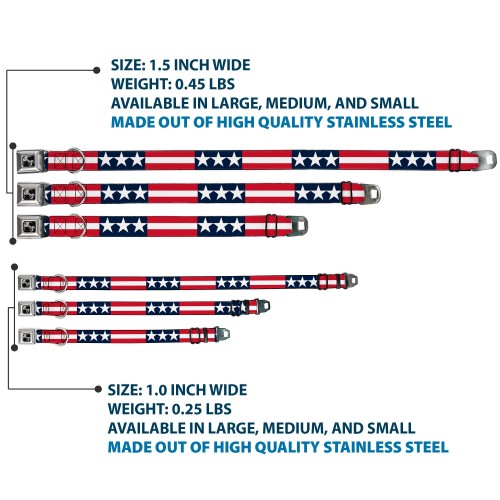 Dog Bone Seatbelt Buckle Collar – Stars & Stripes Blue/White/Red/White