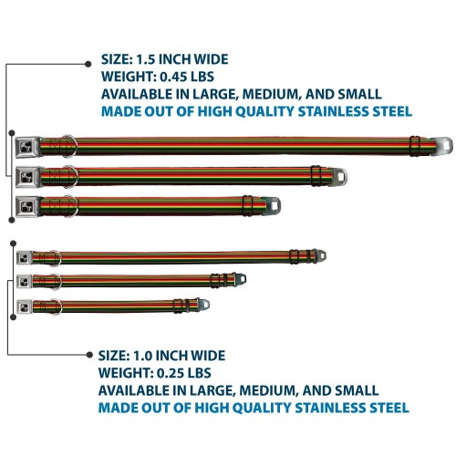 Dog Bone Seatbelt Buckle Collar – Stripe Transitions Black/Red/Green/Yellow