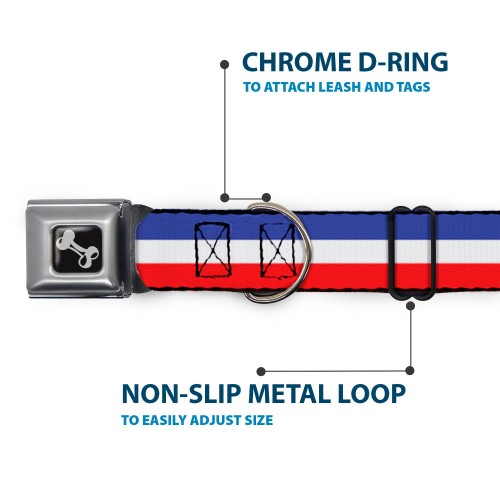 Dog Bone Seatbelt Buckle Collar – Stripes Blue/White/Red