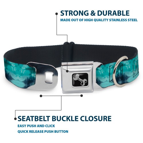 Dog Bone Seatbelt Buckle Collar – Tie Dye Reflection Turquoise Blues