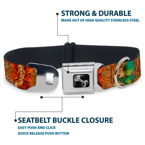Your dog will be the talk of the town when people notice they’re wearing this awesome SeatBelt Dog Collar! Made from high-density polyester and durable steel components, this collar is built to last. It features beautiful vibrant artwork. The buckle is a miniature authentic SeatBelt Buckle, so you press the center button to release the clasp. This product is Made in USA by Buckle-Down Inc. and officially Licensed by Tattoo Johnny.