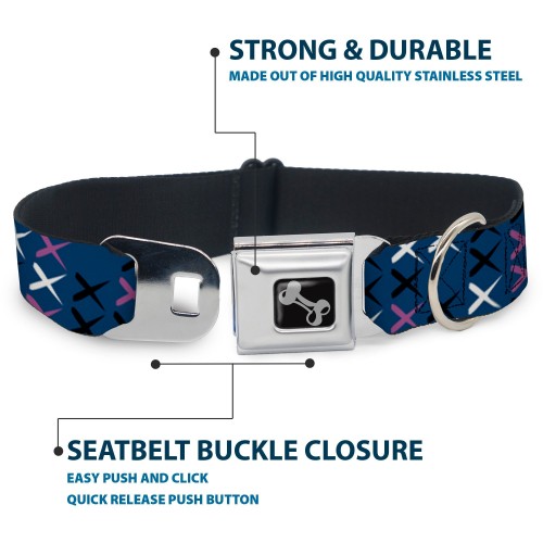 Dog Bone Seatbelt Buckle Collar – Tread Plate Turquoise/Fuchsia/White