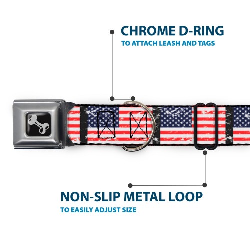 Dog Bone Seatbelt Buckle Collar – United States Flags Weathered/Black