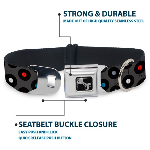 Dog Bone Seatbelt Buckle Collar – Vinyl Records Gray/Black/Red/Blue/White