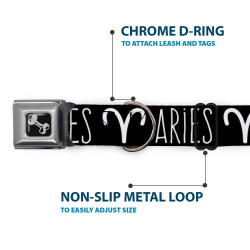 Dog Bone Seatbelt Buckle Collar – Zodiac ARIES/Symbol Black/White
