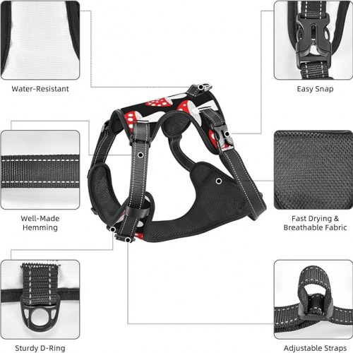 Dog Chest Strap for Large Medium Small Dogs Breeds, Cute Cartoon Red Mushrooms Animals Traction Rope Chest Strap with Reflective Strip, Pet Adjustable Training Harness