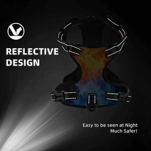 Dog Harness Pet Harnesses, Adjustable Reflective Outdoor Red and Blue Fire Black Vest, for Small, Medium, Large Dogs, Easy Control Handle for Walking