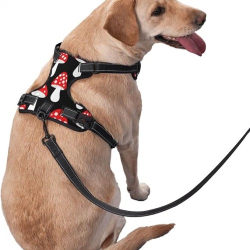 Dog Harness Traction Belt for Small Medium Large Dog, Cute Cartoon Red Mushrooms Animal Outdoor Walking Training Traction Rope Vest with Reflective Fabric