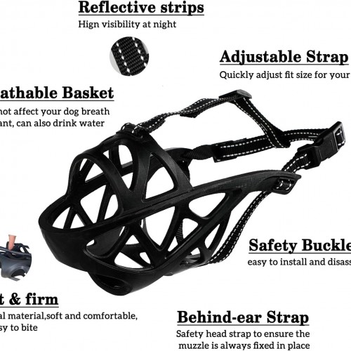 Dog Muzzle, Breathable Basket and Soft Cage Black Dog Mouth Cover,Anti-Biting, Barking and Chewing for Small Medium Large Dogs, 1 Pack Poop Bags for Dogs (XL)