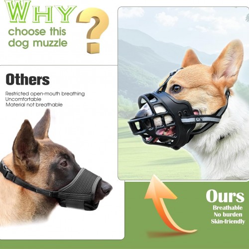 - THE ONLY MUZZLE A DOG NEEDS: Say goodbye to old-fashioned muzzles. This muzzle prevents your dog from biting, destroying, fighting, digging, and eating anything, while the basket-style design provides all-around mouth protection for unrestricted drinking and panting