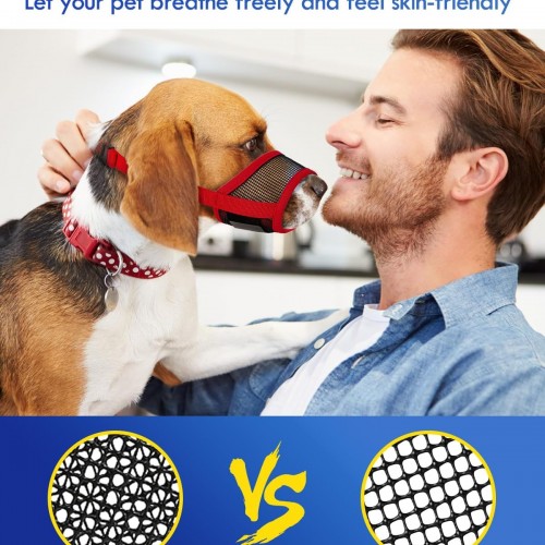 Dog Muzzle, Soft Air Mesh Muzzle for Small Medium Large Dogs Anti Biting Barking Chewing, Breathable Drinkable Adjustable Loop Pets Muzzle for German Shepherd Husky Labrador Retriever (Red,L)