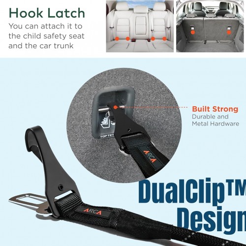 Dog Seat Belt for Car | Universal Dog Car Seatbelt | Durable Reflective Rope with Clip Hook Latch, Buckle and Alloy Carabiner- Safe and Secure Pet Safety Restraint