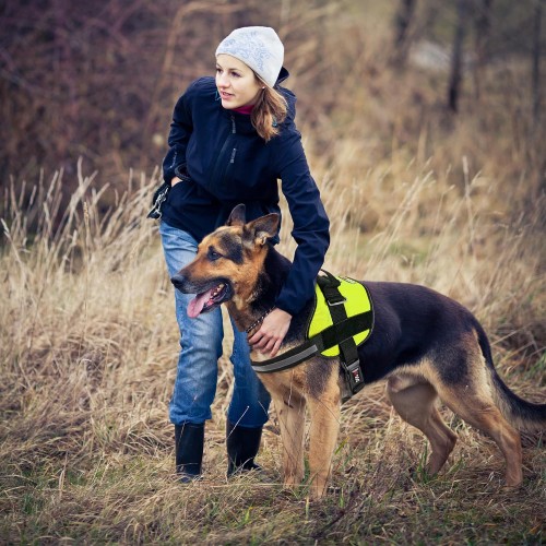 - ADJUST THE SIZE TO YOUR PET’S NEEDS Our Service Dog harness vest is fully adjustable so as to ensure a comfy yet snug fit. Forget about harnesses coming loose. Forget about seams and stitching falling apart. The quick release belly buckle facilitates use to the fullest and the top handle is great for added control and assistance.