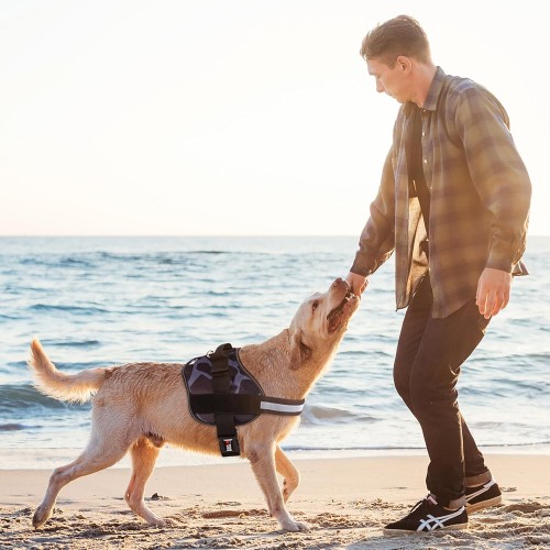 - ADJUST THE SIZE TO YOUR PET’S NEEDS Our Service Dog harness vest is fully adjustable so as to ensure a comfy yet snug fit. Forget about harnesses coming loose. Forget about seams and stitching falling apart. The quick release belly buckle facilitates use to the fullest and the top handle is great for added control and assistance.