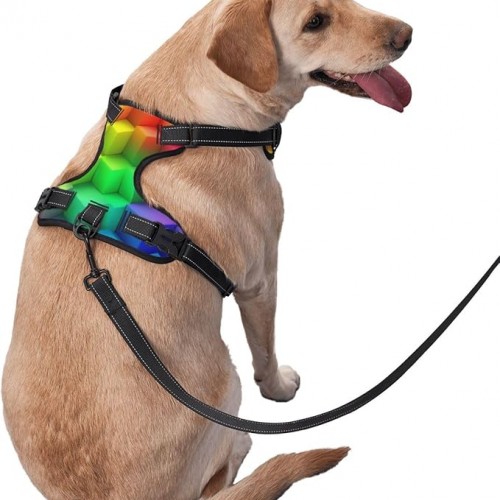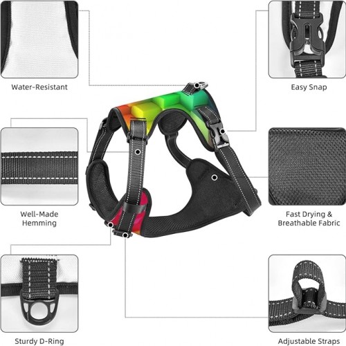 Dogs Adjustable Anti Loss pet Chest Strap Rainbow Colorful Blocks Traction Rope Set, Suitable for Outdoor Training Running of Dogs and Cats, with Reflective Vest Straps