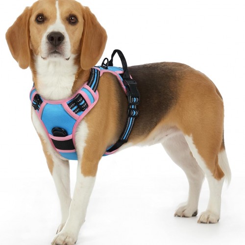 Eagloo Dog Harness for Large Dogs, Easy Wearing with 3 Buckles, Adjustable No Pull Pet Harness with 2 Rings for Walking, No Chock Reflective Soft Padded Vest with Control Handle, Red & Teal, XL