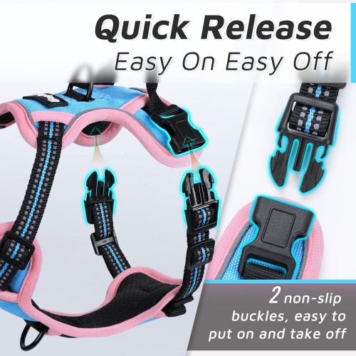 - All-Day Comfort: Made with advanced breathable padded air mesh, our pet harness can keep your puppy friend cool and dry. Combined with a soft-edged, no-choke design, it ensures irritation-free wear and consistent, cozy support in any weather