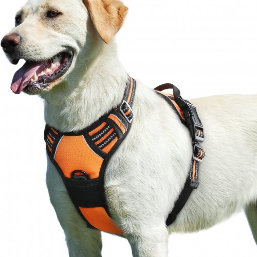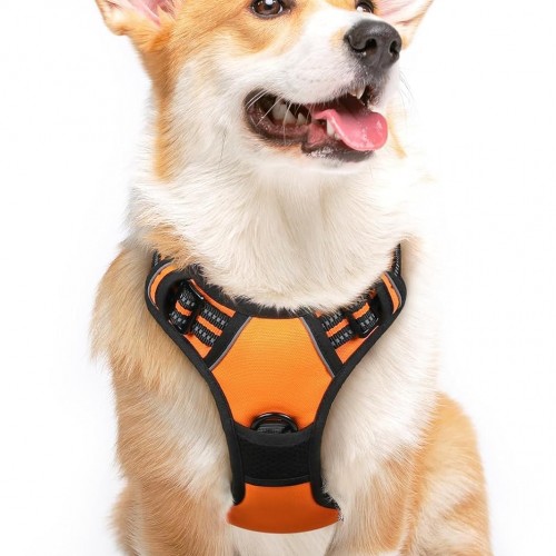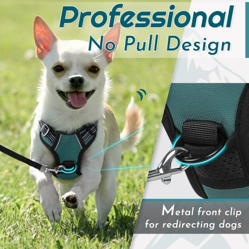 Eagloo Small Dog Harness No Pull, Service Vest with Reflective Strips and Control Handle, Adjustable and Comfortable for Walking, No Choke Pet Harness with 2 Metal Rings, Dark Green, XS
