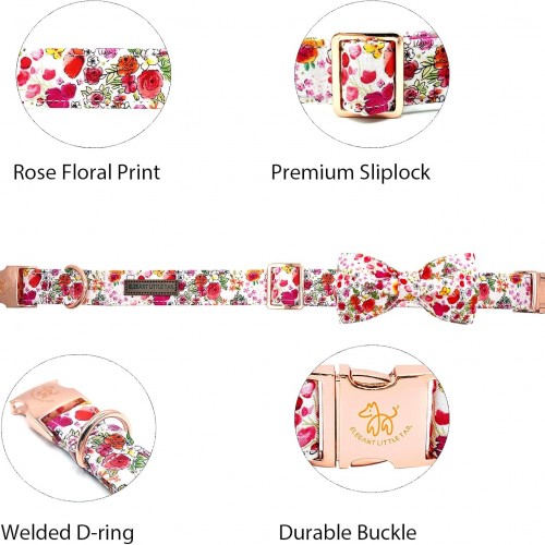 - UNIQUE DESIGN: The unique and lovely design is perfect for showing off your pup’s beauty and personality or as a dog gift, instead of just the basic black or red dog collar you see everywhere else.You can see matching leash, dog flower, dog bandana in Elegant little tail store.
