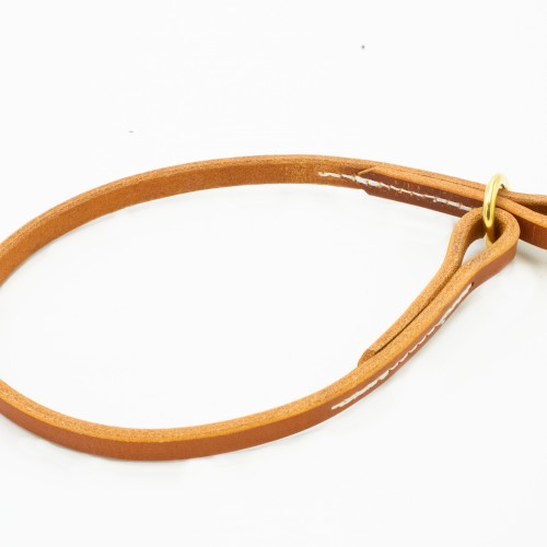 Our English Bridle Leather Slip Collar is handmade in the US by one of our longtime crafters. These are amazingly durable and absolutely gorgeous. His “family secret” that has been used for generations keeps the colored edging from bleeding. Bridle leather can be used in the show ring or for every day. These are the preferred show items for several breeds.