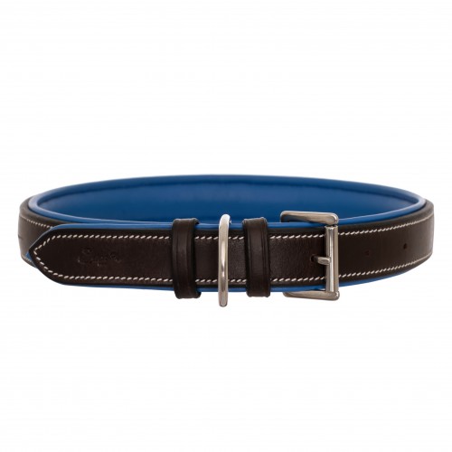 ExionPro Fancy Stitched Padded Leather Dog Collar – Blue Padding