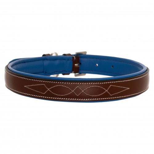 Exion Silver Snaffle Padded Leather Dog Collar – Blue Padding