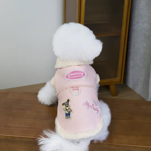 Faux Leather Puppy Decor Dog Harness Jacket