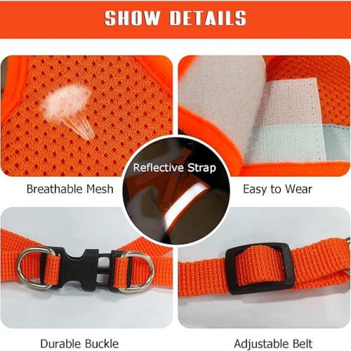 - Reflective & Safe – Reflective dog harness strap design, makes it visible in dark night and low light conditions, improves safety when dogs and cats walking at night. And the vest-type design evenly distributes the stress area of the chest and shoulders, reducing the dog’s stress.