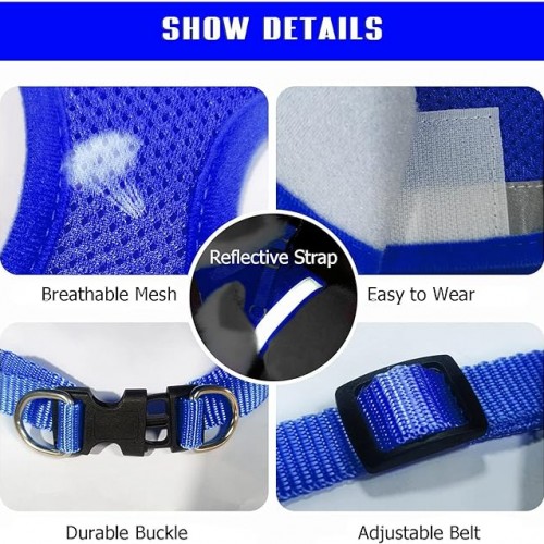 - Soft & Comfortable – The dog harnesses are made of mesh fabric, the front fabric is breathable and comfortable, and the dog is not stuffy. The reverse fabric is delicate and soft, and the weaving threads are dense and not sticky to dog hair.