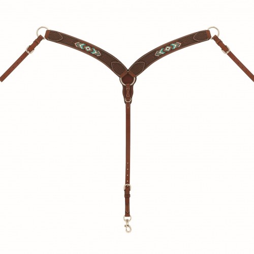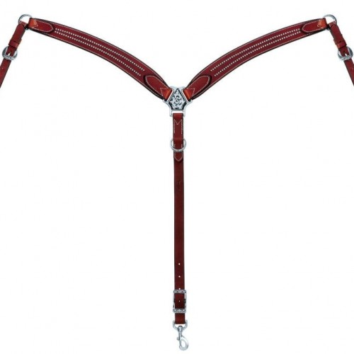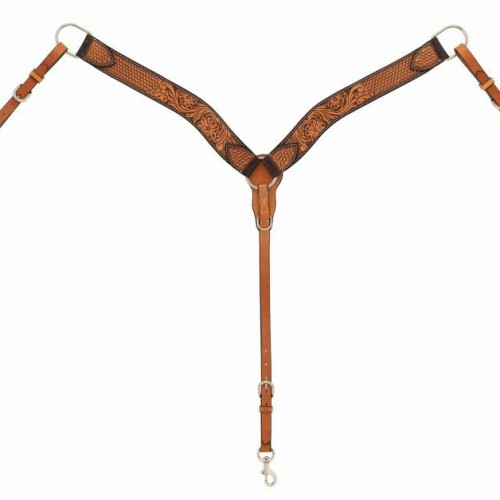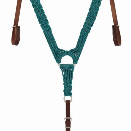 This 2″ wide webbing breast collar is lined with 1/2″ thick, black 100% felt on the breast pieces and center strap for added comfort. Features a tie down dee and a snap for cinch attachment. Durable nickel plated hardware (except the center ring is non-rust stainless steel). Horse size.