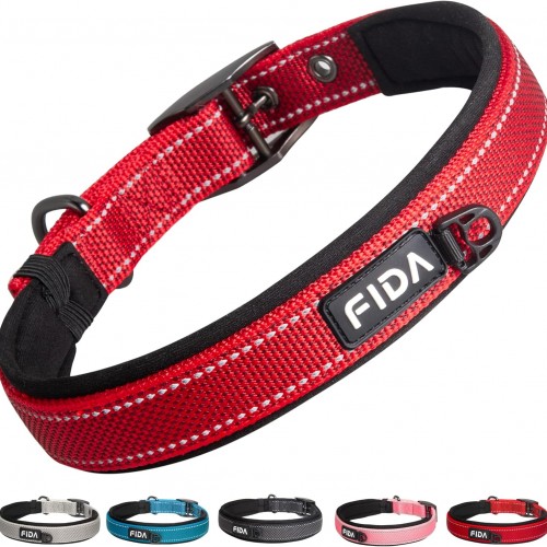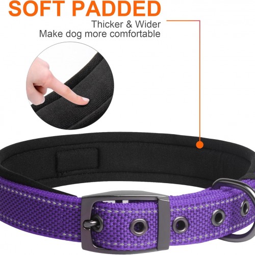 Fida Heavy Duty Dog Collar, Ultra Comfortable Soft Neoprene Padded, Adjustable Reflective Nylon Pet Collar with Durable Metal Belt Buckle for Medium Breeds (M, Purple)