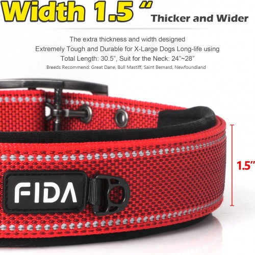 Fida Heavy Duty Dog Collar, Ultra Comfortable Soft Neoprene Padded, Adjustable Reflective Nylon Pet Collar with Durable Metal Belt Buckle for Medium Breeds (M, Purple)