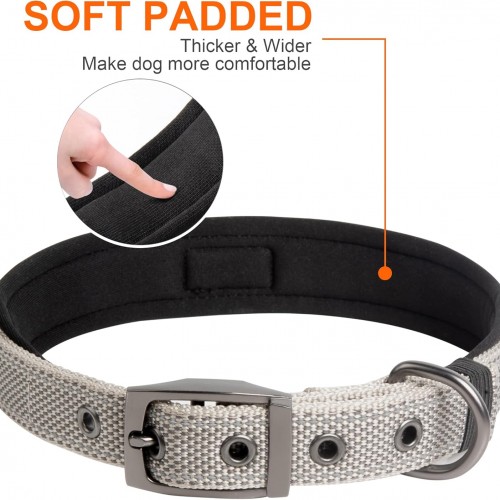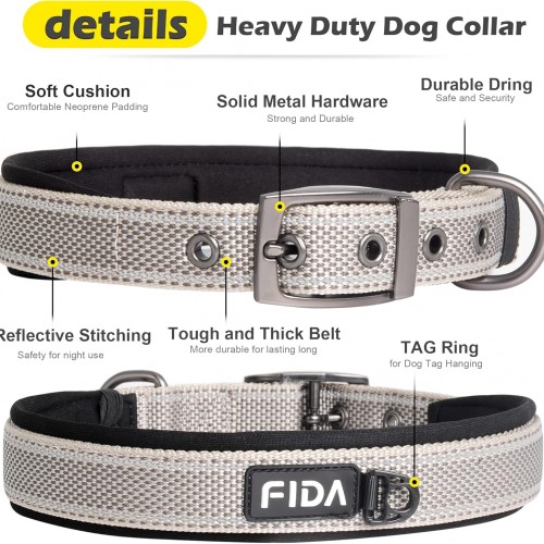 Fida Heavy Duty Dog Collar, Ultra Comfortable Soft Neoprene Padded, Adjustable Reflective Nylon Pet Collar with Durable Metal Belt Buckle for Small Breeds (S, Grey)