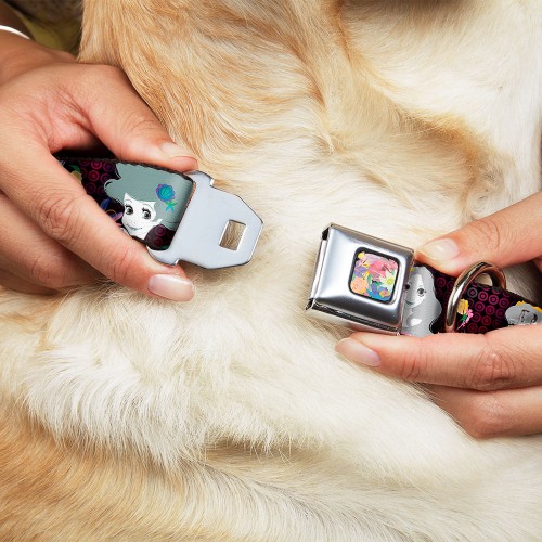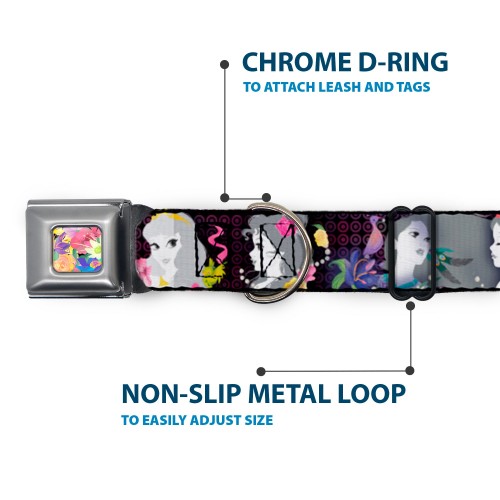 Floral Collage Full Color Multi Pastel Seatbelt Buckle Collar – Princess Silhouettes Dots Black/Purple/Gray/Multi Color