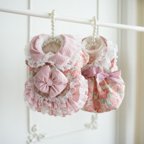 Floral Lace Layered Dog Cat Harness Dress/Jacket
