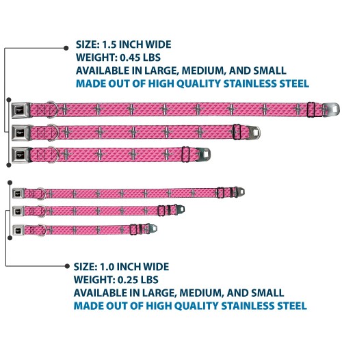 Your dog will be the talk of the town when people notice they’re wearing this awesome SeatBelt Dog Collar! Made from high-density polyester and durable steel components, this collar is built to last. It features beautiful vibrant artwork. The buckle is a miniature authentic SeatBelt Buckle, so you press the center button to release the clasp. This product is Made in USA by Buckle-Down Inc. and officially licensed by Ford.