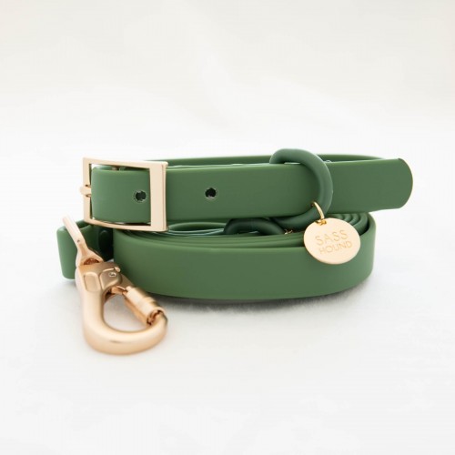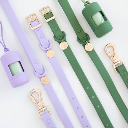 Our newest Water resistant Walk set includes a Collar, Leash and Poo Bag. Specially designed to repel water off also to be rust and dirt resistant.