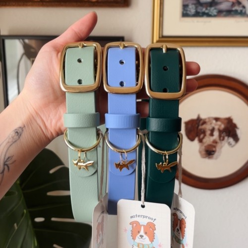 🏔️ Tough trails? No problem! At FoxMoth, we believe you should never have to sacrifice durability for style – that’s why our waterproof line is handmade from Biothane material and finished with solid brass hardware 💛